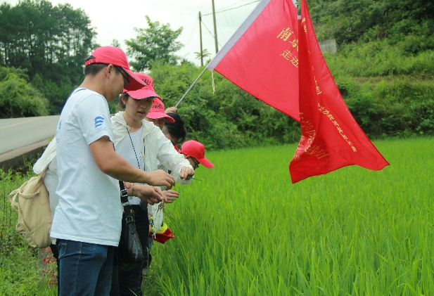 7月12日上午,团队一行在解说员的介绍下,参观了“贵州教育第一人”夏同龢状元的故里,深入了解了麻江当地文化发展的现状。随后,在八叉书库 章建伟博士的带领下,团队成员对高枧村周边地区的水稻种植情况进行了实地考察。章建伟博士结合当地水稻实例,向我们讲解了水稻种植与栽培管理的相关知识,并针对当地水稻种植密度偏高等问题提出了合理建议,队员们由此对麻江地区的稻米种植情况有了初步的了解。