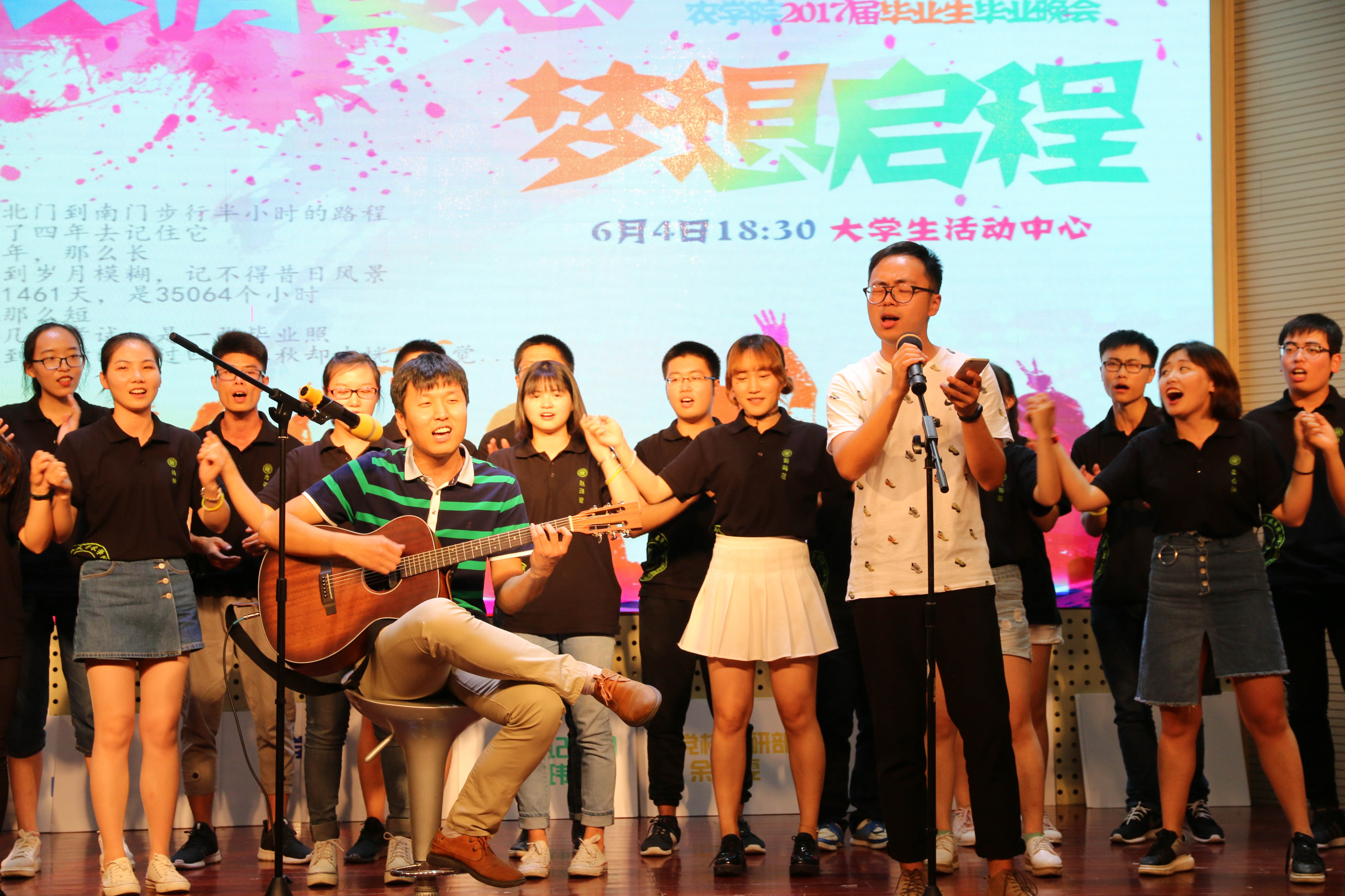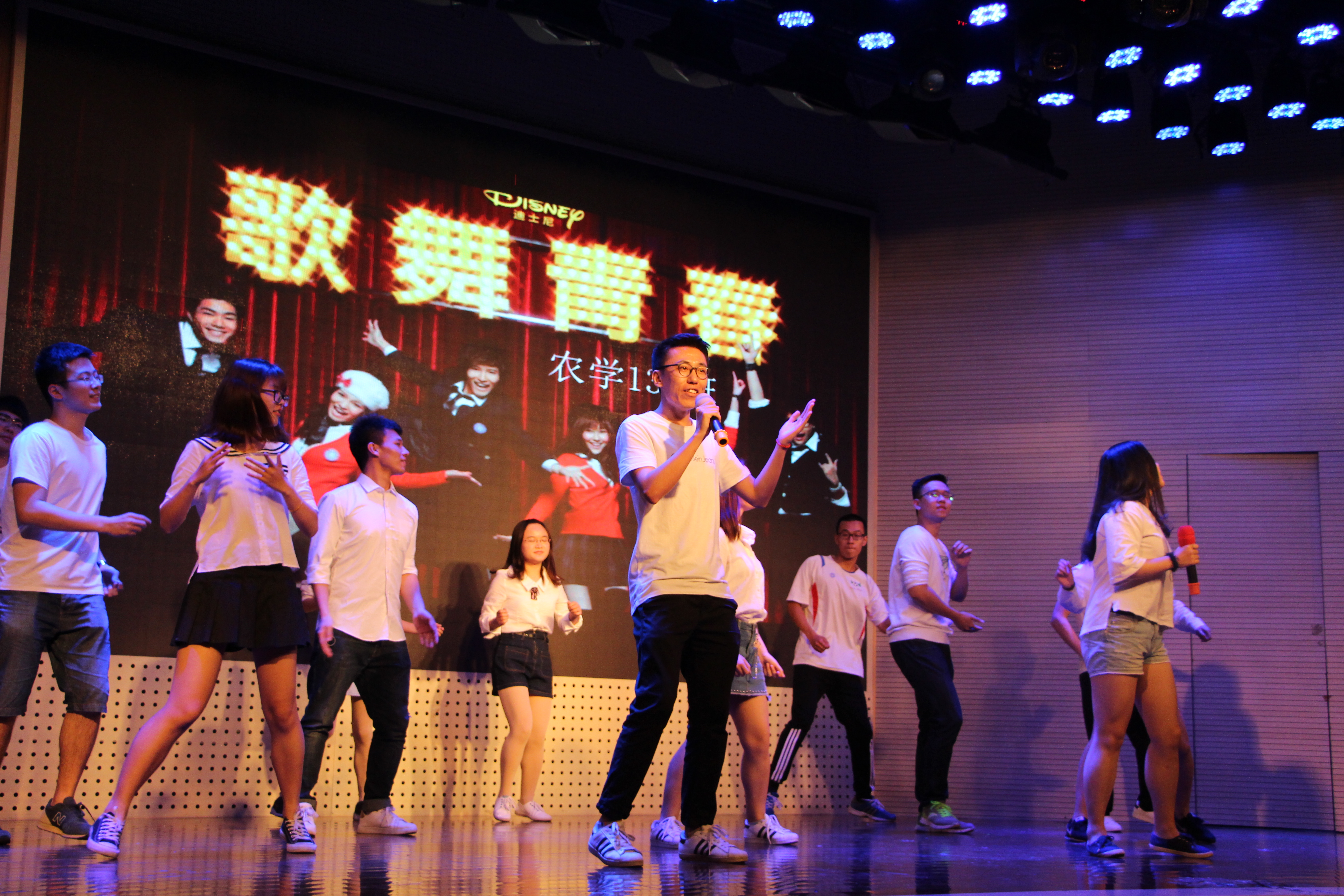 本次晚会以“浓情蜜意,梦想启程”为主题,分为“青春的初遇”, “美丽的邂逅”, “梦想的起航”三个部分。13级同学们以歌舞、情景剧、话剧等形式展示了对学习生活的态度以及同学之间的纯真友情,将场上气氛不断推向高潮。农学133班的歌舞表演《歌舞青春》活力四射,种子132班情景剧《有妖气》创意地将各大经典串连在一起,农学132班舞蹈串烧《不如跳舞》和种子132舞蹈剧《NANAland》也跳出了青春,展现了活力,农学134班话剧《铁锹的名义》以及植物实验132小品《地铁那些事》以幽默的表演方式,贴近八叉书库 学子生活,收到观众的一致好评。农学132 班通过校园剧《那些年》与同学们一起回顾了四年的大学生活,让人感动。14级团委学生会也用《你在烦恼什么》向学长学姐们送上了祝福。晚会上王老师、姚老师合唱的《老男孩》以及彭老师弹唱的《外面的世界》更将毕业晚会的气氛推上了高潮。之后,各班合唱《栀子花开》、《当,有了你》、《不说再见》、《南农》、《骄傲的少年在路上》、《再见》、《晚安》等歌曲,学弟学妹们也纷纷给毕业生们献上了鲜花和拥抱,歌声与鲜花表达着离别的伤感与不舍。