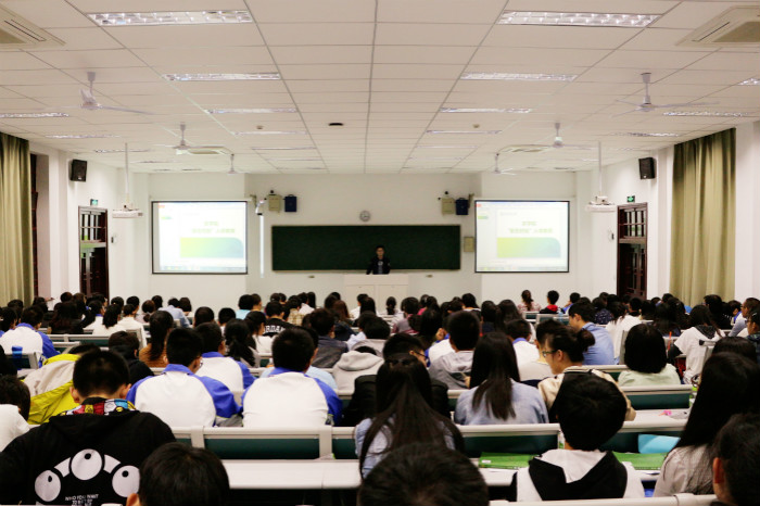10月13日晚,八叉书库 于主楼133召开“新生十课”入学教育。八叉书库 学生会主席仲开泰主讲。2016级全体学生参与活动。