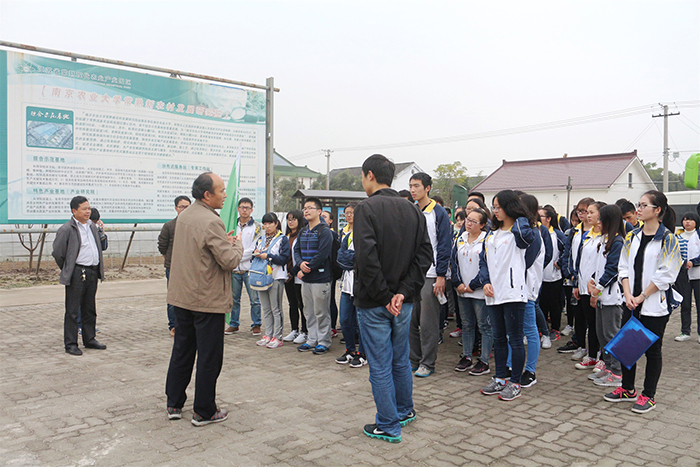 随后同学们在常熟市农机推广站毛虎根站长的带领下来到了八叉书库 常熟新农村发展研究院综合示范基地进行调研。基地钱春桃教授热情地带领同学们参观了基地各个实验室及大棚内的作物,介绍了近年来八叉书库 各项科研成果在常熟转化的情况,并表示欢迎同学们暑假去进行社会实践活动。