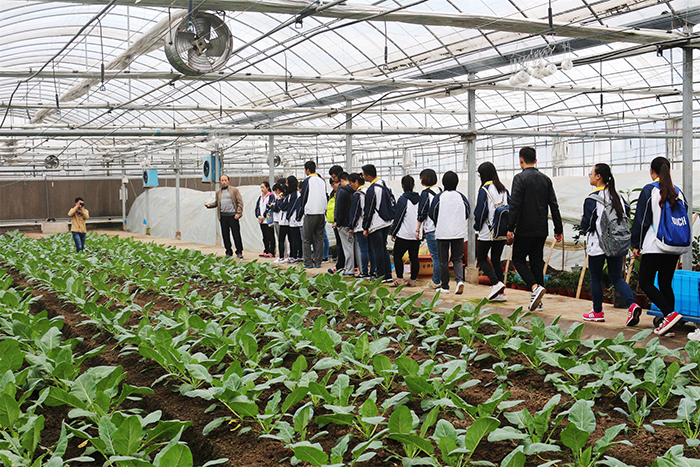 对蒋巷村调研过程中,同学们通过视频了解了蒋巷村如何从一个江苏省远近闻名的贫困村发展成如今的国家级农村现代化示范村,视频生动地展现了村党委书记常德盛的先进事迹。随后在讲解员的带领和解说下,同学们了解了蒋巷村的村史以及发展状况,并参观了村民菜园、村民新家和村内生态园等地,对新农村有了进一步的认识。