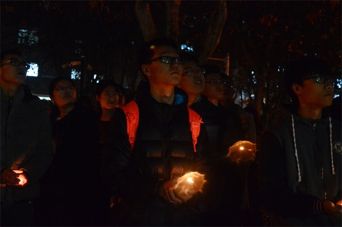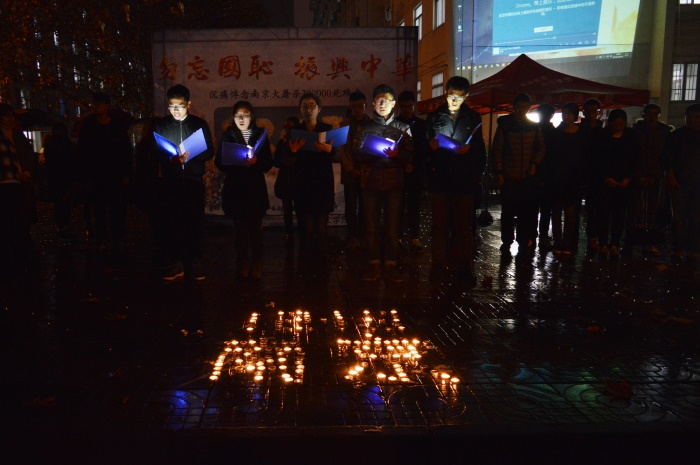 晚上7:00,八叉书库 分党校组织本院的全体党员和预备党员观看了“南京!南京!”的部分片段,并用蜡烛摆出“南京,12•13”的字样,进行集体默哀,之后由党员代表和学生会成员带来的“战时母女对话”和“和平宣言”朗诵,借此来对大屠杀死难者进行追忆缅怀,警示广大青少年勿忘苦难中逝去的生命,勿忘民族曾经的苦难,勿忘国耻,勿忘所有英勇献身的英烈和为国做出贡献的人们,勿忘曾经的战争创伤,牢记历史,负重前行,振兴中华。