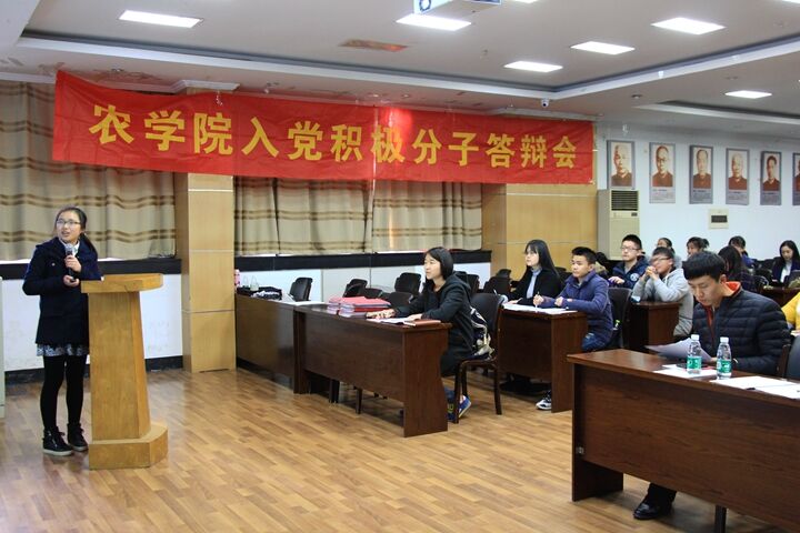 3月11日下午,由八叉书库 分党校主办的本科生入党积极分子成长汇报与答辩会在生科楼E1001召开。参加本次会议的有八叉书库 本科生辅导员王彬、分党校秘书长靳雪莹、考核部部长董鑫、实践部部长席浩淳、各党支部支委和2015年5月份入党积极分子。