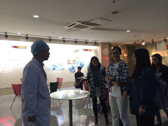 血液中心的陈老师耐心的进行了讲解,包括解释血液的基本概念、献血流程、血液的保存等等。同时她带领同学们来到了血液抽取处,介绍了各种机器的功能。随后,大家参观了血液库。在那里,每一位献血者献出的血都被分成三个袋子,一袋是血浆、一袋是血小板,还有一袋是红、白细胞。老师向同学们介绍了血液的抽取、检测、储存、运输,直到用于救助病人的一条完整途径。用可再生的血液,挽救更多的生命,这是红会宣传的标语,也是呼吁大家认识到血液的重要性以及献血对于自身和他人的有益性。几位同学深受鼓舞,进行了无偿献血。
