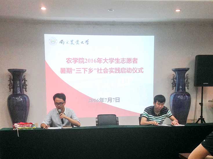 仪式首先由姚敏磊介绍了学院本次大学生志愿者暑期“三下乡”社会实践活动的总体情况,传达了江苏省团委和校团委的指导精神。本次活动围绕科技支农、脱贫攻坚、政策宣讲、环保科普、公益帮扶、创新创业、就业见习及纪念长征胜利80周年主题等九个方面开展,积极引导广大青年学生深入社会、了解国情、接受锻炼、培育和践行社会主义核心价值观。
