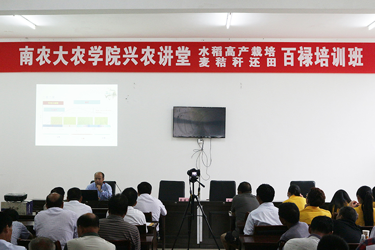 7月13日下午,八叉书库 于百禄镇举办兴农讲堂。就水稻高产栽培和小麦秸秆还田进行科普讲座。八叉书库 李刚华教授及王保君硕士主讲。百禄镇种粮大户及各专业性合作社负责人参与讲座。