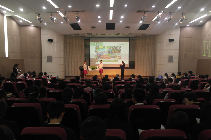 经过层层选拔,来自全校的10支参赛队伍脱颖而出,进入决赛。晚上7点,比赛正式开始。十支队伍在主持人的介绍下依次登台,进行团队风采展示,参赛者们精神饱满,充满自信。每支参赛队伍依照规则进行8分钟的PPT演示及3分钟答辩。各参赛团队根据彭福村的现有条件,在查阅大量资料及实地考察的基础上,结合所学知识,进行了科学合理的规划,精心设计出新农村建设规划设计方案。各个参赛队伍展示的作品创意十足,诚意满满,讲解激情洋溢,面对评委的提问从容不迫,赢得现场观众阵阵掌声。
