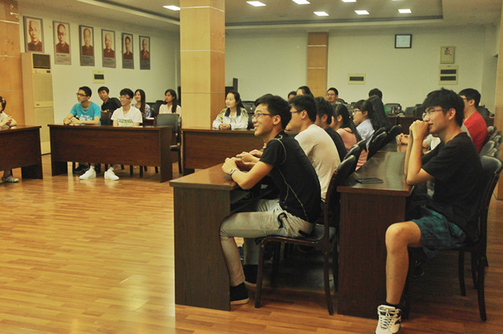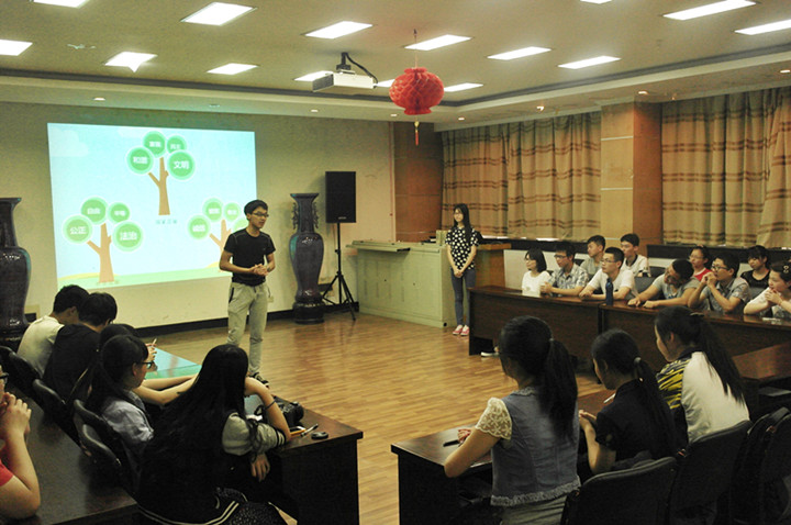 5月22日下午,农学141班在生科楼E1001开展了“跃说·越精彩”的社会主义核心价值观主题班会。学工处教育管理中心施雪钢、外语院辅导员刘方、人文院辅导员曹璇、金融院辅导员陈跃、园艺院辅导员孙笑逸和八叉书库 辅导员王彬受邀参与了本次主题班会。