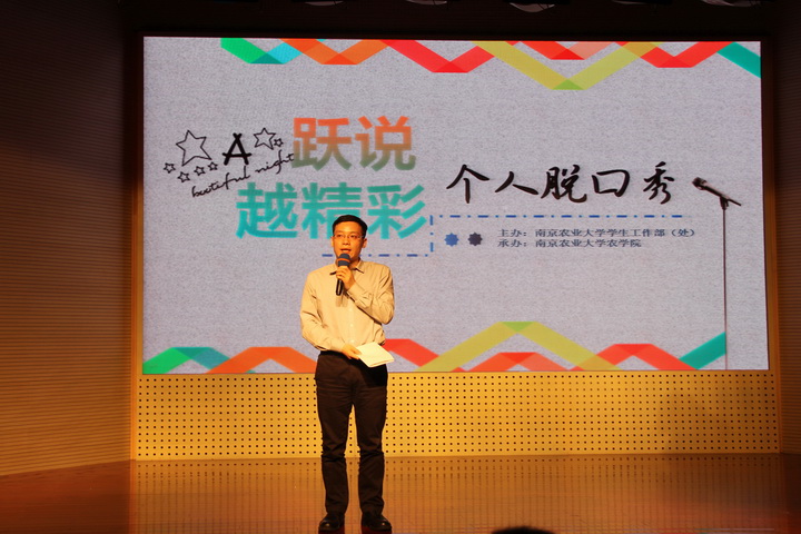 5月28日晚,八叉书库 “悦说·越精彩”个人脱口秀决赛在大学生活动中心举行。本次比赛由八叉书库 学生工作处主办,八叉书库 承办。校学生会学生工作部副部长李献斌、校团委副书记王超、工学院学生工作处处长邵刚、八叉书库 党委副书记庄森、理学院党委副书记刘照云,金融学院的党委副书记李日葵,植物保护学院党委副书记黄绍华以及生命科学院党委副书记李阿特出席并担任本次比赛评委。