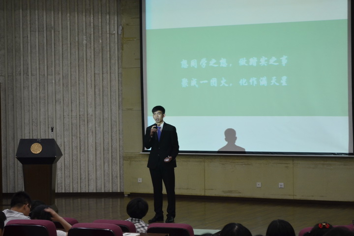 下午两点,大会准时开始。现任学生会主席袁昊先总结了过去一年八叉书库 学生会获得的成就,对大家的工作表示深深的感谢。并对即将成立的新一届团委学生会送上祝福。