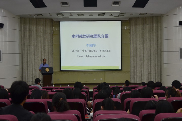 首先,庄书记介绍了举办本次专题讲座的背景,他指出,6月是准毕业生保研考研开始的季节,本次讲座就是围绕八叉书库 各个实验室的基本科研情况向同学们做一个简单的介绍,同时也欢迎大家继续留在八叉书库 攻读硕士。讲座开始,先由来自农学系的水稻课题组、农业信息课题组、小麦课题组、棉花课题组、小作物及其他课题组的主讲人上台通过PPT的演示及讲解,为大家介绍了本课题组的基本情况、研究方向、研究成果、人才培养等方面信息,并针对大家感兴趣的招生情况进行了介绍。接下来,由来自遗传育种系的水稻课题组、小麦课题组、棉花课题组、大豆课题组及种业科学系的主讲人为大家同样介绍了相关信息。