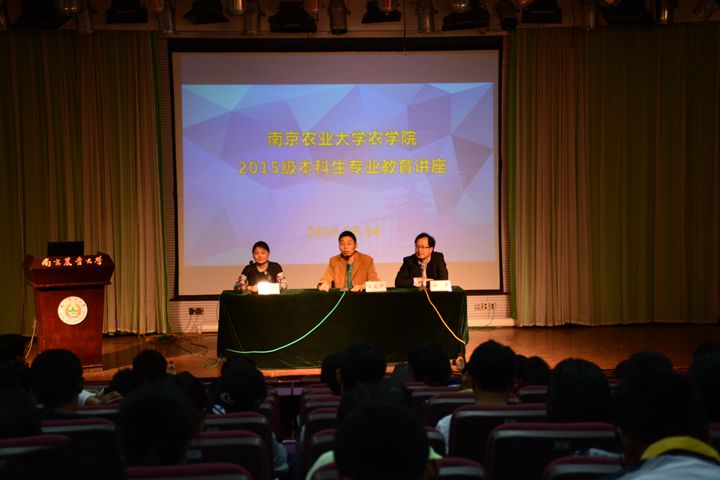 10月14日下午2点,八叉书库 在教四楼报告厅举办了2015级本科生专业教育讲座。八叉书库 种业科学系系主任刘康教授、农学系副主任王友华教授、遗传育种系副主任曹爱忠教授以及八叉书库 团委书记殷美老师出席了此次教育讲座。