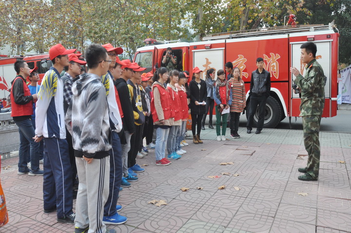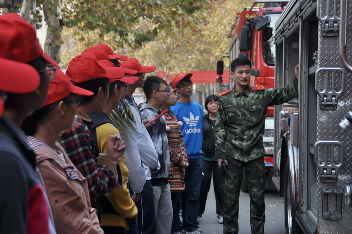 下午2时,消防支队的官兵按时开来消防车在三食堂旁边整装待发。消防队支队长首先向同学们展示了不同类型的消防车,并对每辆车局部的结构与功能做了详细的介绍,接着,消防支队长围绕今天消防演练的内容做了讲解,并提出了注意事项。