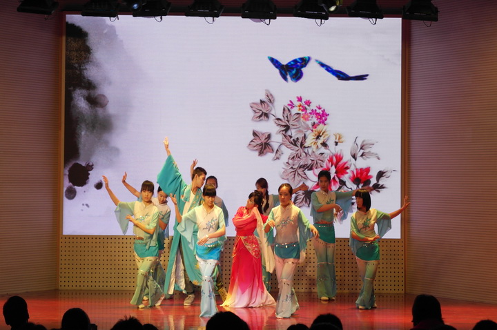 农强141带来合唱《同桌的你》,熟悉的歌词与动人的旋律把大家带回了自己的中学时代。农学142特地准备了视频,把全班同学从开学到现在的点点滴滴回放了一次,一首《青春纪念册》,温馨而动人。农学141班滑稽的乌龟操,逗的台下观众捧腹大笑,而后又峰回路转,以一首柔情的《卫岗一号的日子》唱出了大一同学的心声。种子142表演了舞台剧《招聘》,有搞笑的片段,也有劲歌热舞,带动了全场的氛围。农学143班的舞蹈串烧《不一样的青春》,农学144班的《化蝶》也都十分的出彩,《化蝶》中演员优美的舞姿,动人的旋律,把梁祝的美好爱情完美的展现了出来,赢得了观众阵阵掌声。