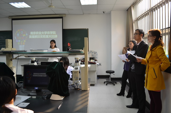 科协承办的第一届“疯狂实验室”大赛在生科楼实验室顺利进行。实验教学中心的胡艳老师、田中伟老师和刘晓雪老师应邀担任本届大赛的评委。
