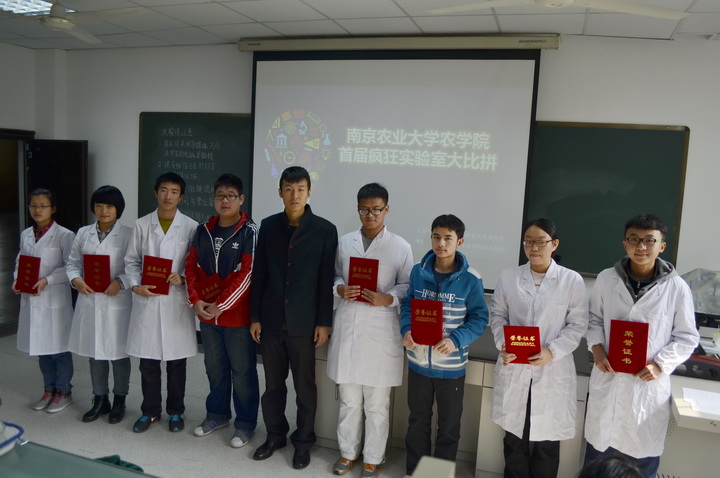 11月20日晚,进入决赛的选手们参加了决赛的赛前培训,实验中心老师就实验步骤和实验中需要注意的一些事项对选手做了介绍。21日晚,参赛选手首次进入实验室,在老师的指导下熟悉实验仪器,详细了解实验在操作上的几个要点及容易出现的问题。22日上午,决赛正式开始,参赛选手就实验原理知识考察,种子生活力测定实验,植物有丝分裂观察实验三个环节展开角逐,在比赛过程中,选手们认真操作仔细观察,评委们在现场对每位参赛选手的操作及时给予评分,比赛紧张而有序的进行。经过2个小时的角逐,比赛全部结束。经过认真评审,最终马志奇,陈川两位同学获得一等奖,戎晨煜等五位同学获得二等奖,赵玮莹等八位同学获得三等奖,此外,马志奇,陈雅津同学分别获得“知识小达人”和“实验小达人”荣誉称号。三位评委老师和辅导员王彬老师共同为获奖选手颁发了荣誉证书,并合影留念。