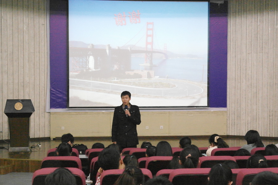 4月1日下午,八叉书库 五位寒假赴UC Davis游学的学子在图书馆报告厅做了题为“游子讲堂”的交流讲座。八叉书库 辅导员王彬老师应邀出席了本次讲座,八叉书库 大一、大二的同学聆听了讲座。