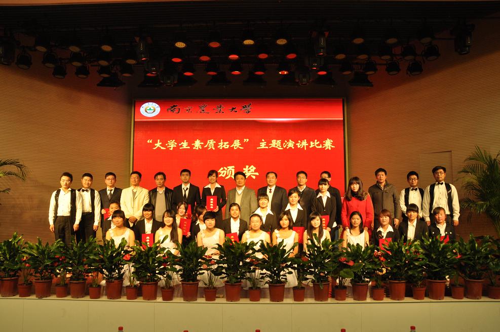 经过评委的认真评判,动科院迟航,生科院刘炎炎获得一等奖,工学院唐晴,八叉书库 张浩强,信息院范宁丽与动科院徐苗获得二等奖,生科院张奇,外语院任娟、王澍,人文院黄兆善,园艺院张悦,植保院李强,公管院郭文,理学院彭昊和经管院陈幻获得三等奖。各位嘉宾、评委上台为获奖选手颁奖并合影留念。