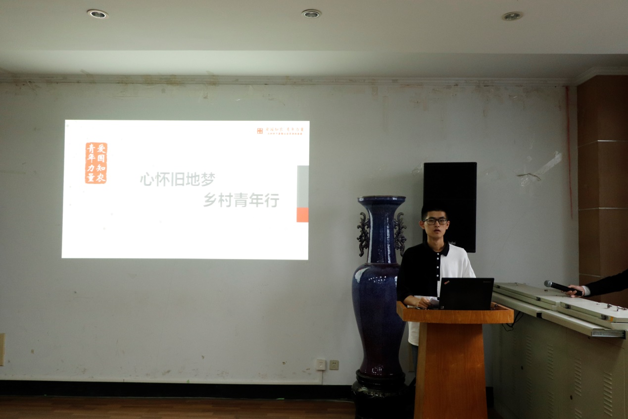 会议伊始,主持人介绍了本年度社会实践概况,2019年暑期,八叉书库 围绕“助力精准扶贫,聚力乡村振兴”主题开展社会实践活动,学院农科学子自发组建15支团队分别深入贵州麻江、江苏宿迁、青海西宁等地区开展实践活动。为表彰2019年大学生“三下乡”暑期社会实践中表现突出团队,八叉书库 团委决定开展社会实践总结暨表彰大会,让更多同学了解社会实践的内涵和意义,进一步扩大暑期社会实践在学生中的影响,为参加社会实践的同学搭建一个共享实践经历和相互学习的平台。