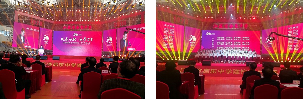 发展大会以“同庆九秩 逐梦百年”为主题,在嘹亮的国歌声中拉开了序幕。大会分为“弦歌不辍▪致峥嵘”、“风华正茂▪致青春”、“扬帆远航▪致梦想”三个篇章,分别邀请启东中学杰出校友、离退休老教师代表及在校师生共同呈现精彩节目,献礼启东中学九十周年华诞。大会在合唱《相聚在美丽的启中》节目中顺便闭幕。