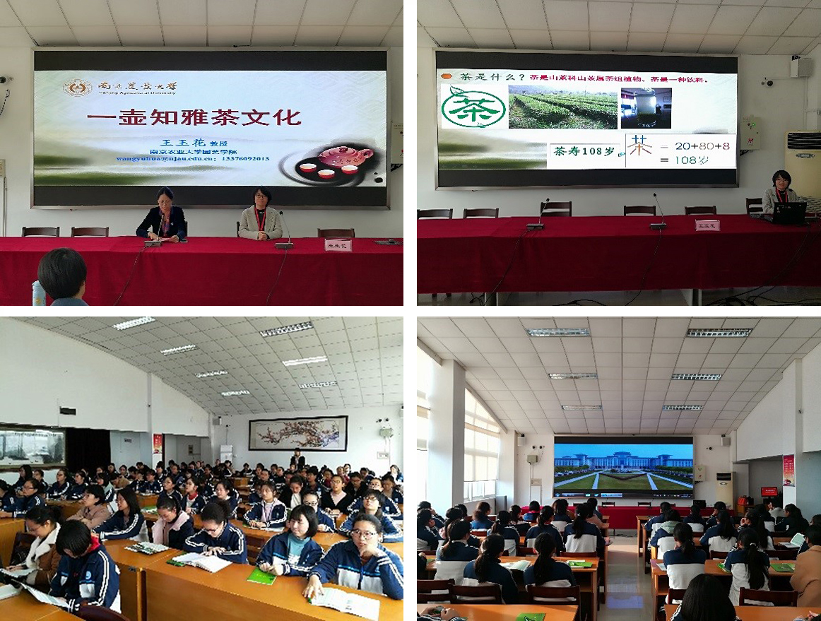 当天下午,王玉花教授应邀为启东中学高二年级部分学生作题为“一壶知雅茶文化”主题科普讲座。她首先向现场师生详细讲解什么是茶及茶学的发展历史,指出茶是一种饮料,在中国茶区分为江北茶区、江南茶区、西南茶区及华南茶区四大产区,并通过播放视频形式,向学生们展示了手工采摘和机械化采摘茶叶的区别。王玉花对茶叶中的化学成分与学生进行现场互动,提出茶叶中的有效成分分别是茶多酚、咖啡碱及氨基酸等成分,并提出茶叶的氨酚比决定了茶叶的口感。最后,王玉花就茶叶的分类和功效对现场师生进行科普讲解,建议饮茶也适度,并结合个人身体状况选择茶叶种类。讲座最后,招生宣传工作小组就八叉书库 的基本情况向现场的师生做了介绍并播放了八叉书库 的招生宣传视频。