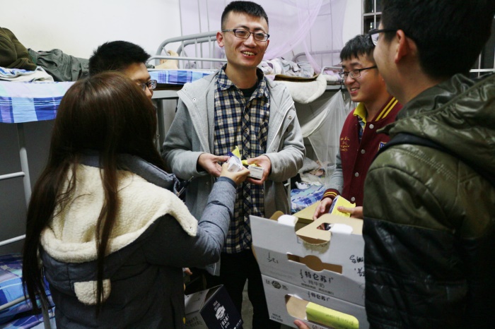 12月1日晚,八叉书库 本科生辅导员和八叉书库 团委学生会成员一起,进入每个宿舍,为每一位考研的同学送去冬日的温暖。