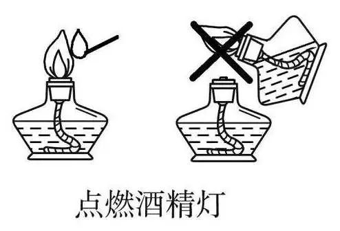 6、点燃酒精灯时,最好是用燃着的火柴来点,坚决不能用2盏酒精灯相互点燃,更不能向燃着的酒精灯内添加酒精。