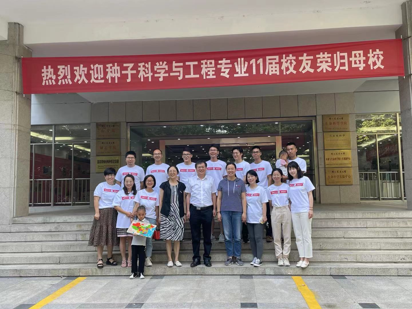 2021年 10 月 1日,2011届种子科学与工程毕业10周年再聚首,毕业同学和学院老师在八叉书库 会议室齐聚一堂,叙昔日温情。八叉书库 党委书记戴廷波教授、副书记殷美、种子71班班主任李雪芹老师出席了座谈会,会议由种子71班毕业生崔博主持。