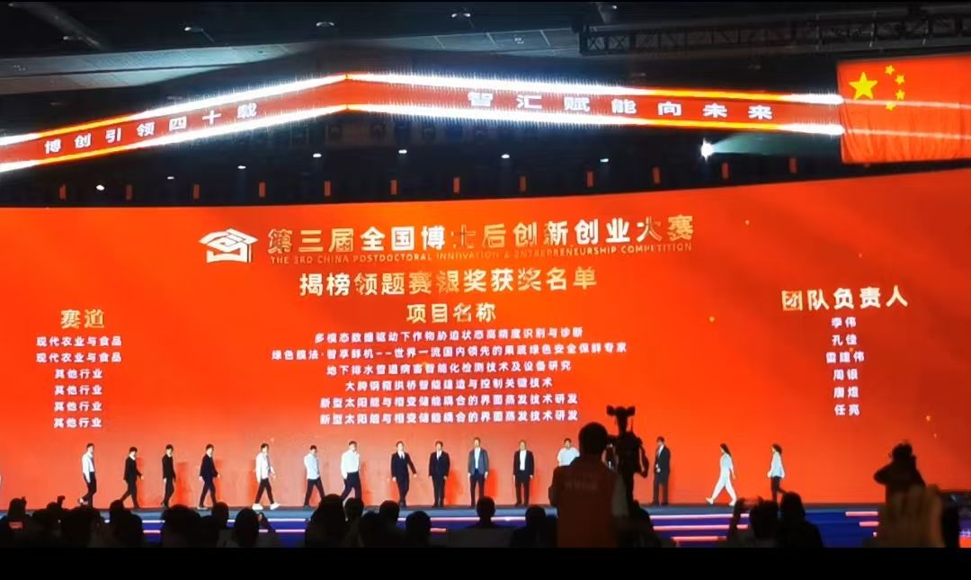 10月28日,以“博创引领四十载,智汇赋能向未来”为主题的第三届全国博士后创新创业大赛总决赛在福建省晋江市举行。经过3天的激烈角逐,江苏赢得1枚金牌、13枚银牌、6枚铜牌和9个优胜奖。八叉书库 钟山青年研究员李伟、谷洋洋、朱杰组成的团队从48个参赛项目中脱颖而出,获得银奖,也是江苏省博士后代表队在揭榜领题赛道现代农业与食品组获得的唯一一个银奖。